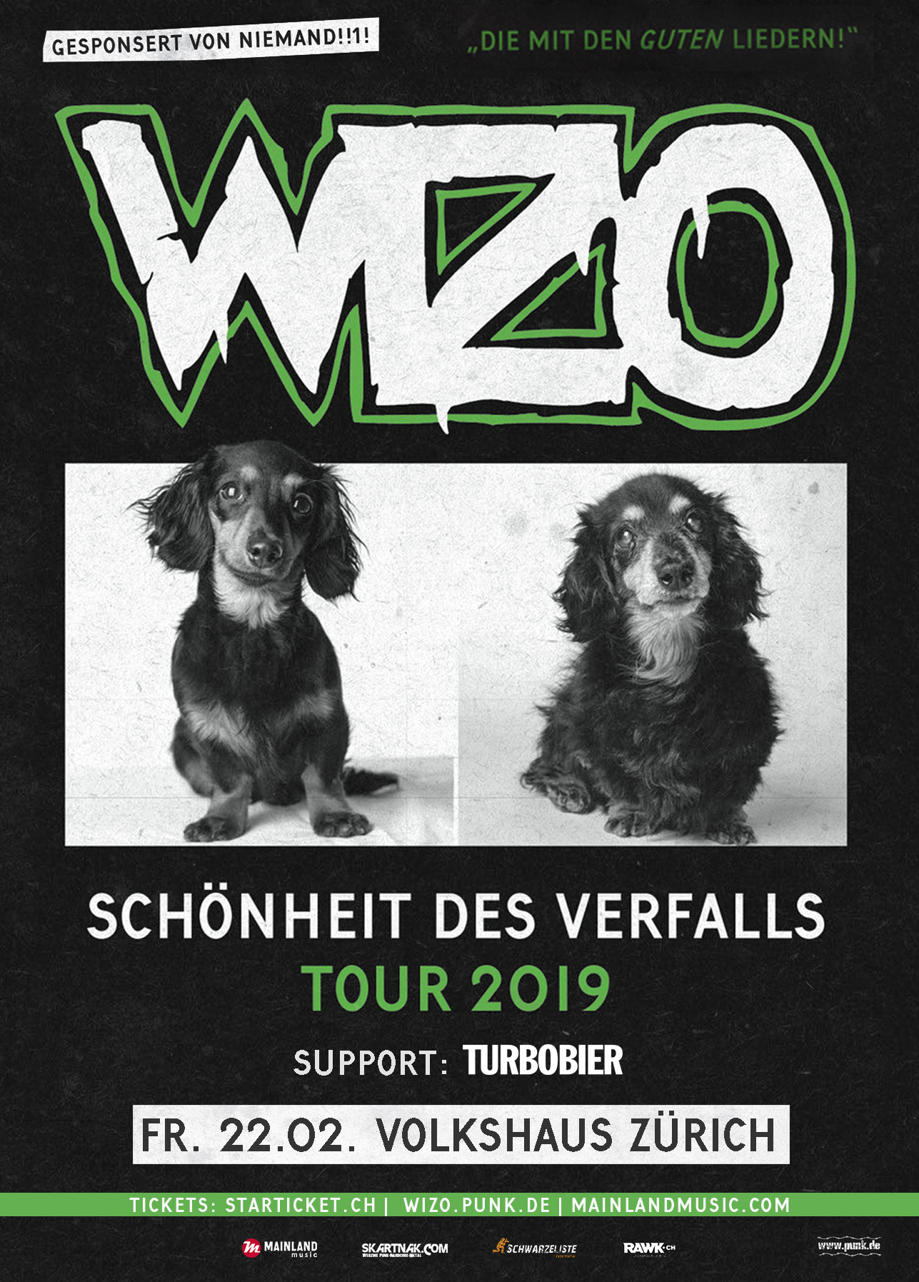 Irgendwie ist doch in letzter Zeit außer dem WIZO alles schlechter geworden, oder? Kriegsgefahr, idiotische Präsidenten, Rechtsruck, Vermüllung der realen und virtuellen Lebensräume und nicht zuletzt der eigene Verfall - es wäre zum Haare raufen, wenn wir bloß noch welche hätten! - Resignation ist aber keine Option! Lieber feiern wir laut mit dem WIZO auf seiner großen Tour 2019 und zeigen der drohenden Apokalypse gemeinsam beide Mittelfinger! Lasst uns mit den WIZO-Ohrwürmern dem Schicksal ein donnerndes Ständchen singen und alle miteinander lauthals lachend auf der Punkrockachterbahn Richtung Weltuntergang rasen!