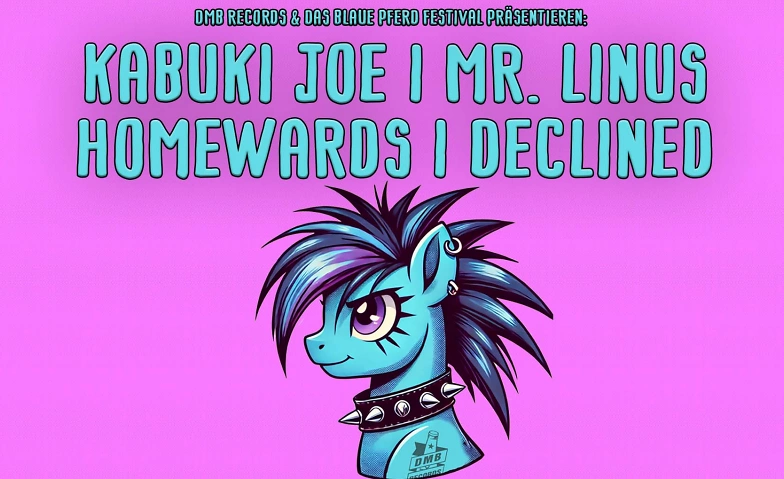 Das Blaue Pony kommt nach Zürich! Der kleine Ableger des Blauen Pferd Festivals aus Bern bringt die vier lokalen Bands des Festivals für einen kleinen Showcase ins Werk 21, um so die Vorfreude auf das grosse Winter-Punkfestival Ende Januar zu steigern. Das sind Kabuki Joe aus Zürich mit ihrem 00er Punk für wilde Partys und lange Nächte. Die Zürcher Band Homewards bringt melodiösen Hardcore und ein neues Album mit selbstdefinierter «trauriger Musik» mit. Die Post-Hardcore-Band Mr. Linus beeindruckt mit rohem Sound und kraftvollen Lyrics und Declined überzeugen mit gesellschaftskritischen Texten am Puls der Zeit, verpackt in puren, ungeschliffenen Punk!