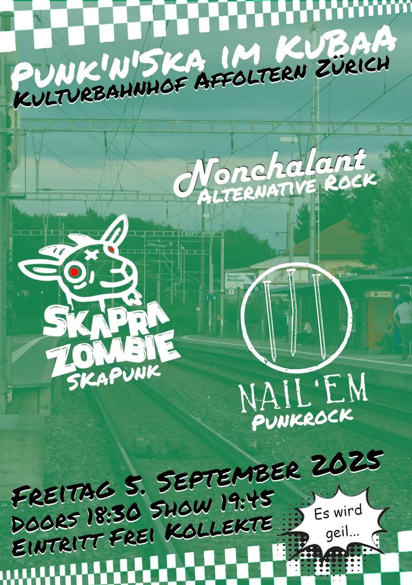 Mit «Punk’n’Ska im KuBaA» geht es ordentlich ab im alten Bahnhof. Euch erwarten treibende Gitarrenriffs, Offbeat Rhythmen und Lyrics mit ordentlich Tiefgang. Tanzen erlaubt. Pogo erwünscht.