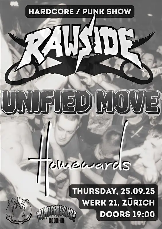 Zusammen mit den Solothurner UNIFIED MOVE und HOMEWARDS aus Zürich erwartet euch eine genauso vielseitige wie auch schlagkräftige Kombo! Ein energischer Rundumschlag – düster, dystopisch, voller Wut mit glasklarer Haltung gegen rechts, gegen Kriegstreiber, gegen Ausbeutung und Ungleichheit in dieser Welt!